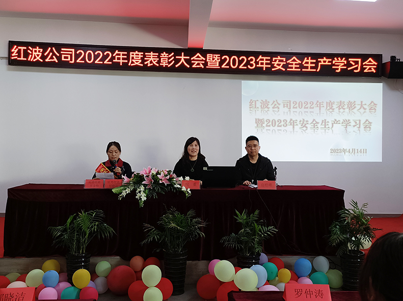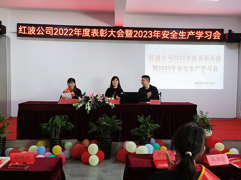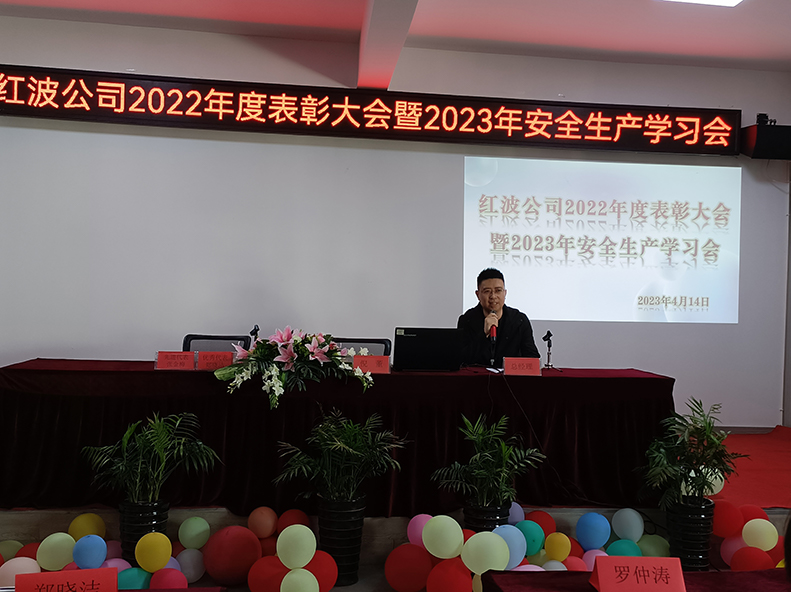 首先由公司办公室主任彭绿敏主持开场讲话,并宣布此次大会的四项会程:第一、2022年度先进、优秀工作者表彰;第二、由优秀、先进工作者代表讲话;第三、由总经理作2022年度回顾生产工作,部署2023年度工作任务和目标;第四、由倪董作2022年度回顾总结暨安全生产学习会。
