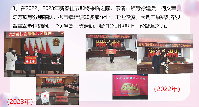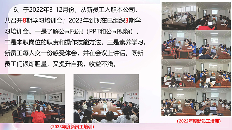 倪董表示:“路虽远,行则将至;事虽难,做则必成。只要有愚公移山的志气、滴水穿石的毅力,脚踏实地,埋头苦干,积跬步以至千里,就一定能够把宏伟目标变为美好现实。”以习近平总书记2023年新年致辞与大家共勉。因受疫情影响,2022年公司和员工都经历了一些困境,倪董通过ppt全面展示了过去一年公司同大家一起经历的点点滴滴,例如关爱“女职工健康知识”专题讲座,“员工生日会”,“追寻红色记忆”党建活动等等,希望大家能在公司这个大家庭中相伴相成,携手共进!