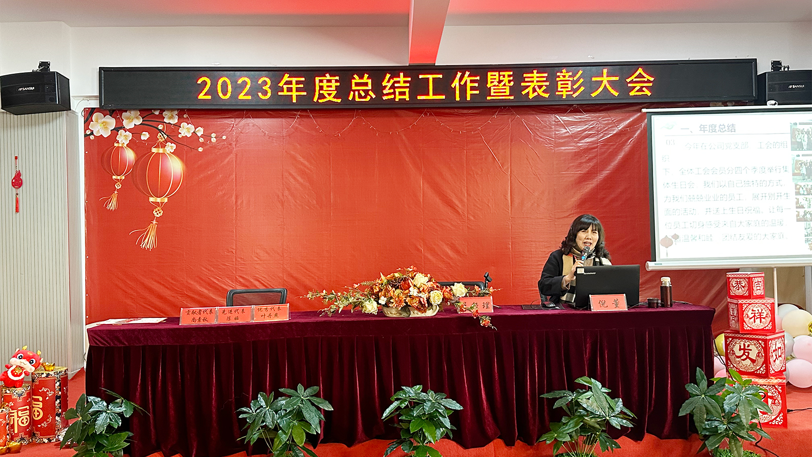 今天我们又是一年的欢聚,公司隆重召开2023年度总结暨表彰大会。衷心感谢全体同仁在这一年里的付出与努力,也感谢大家与公司同舟共济共创美好未来!祝福大家龙年吉祥,阖家幸福!